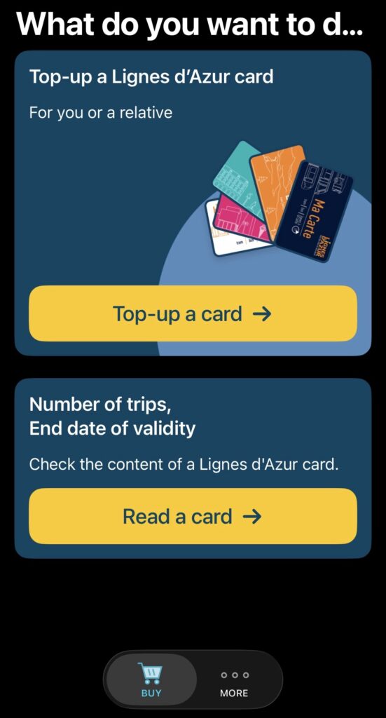- ②チャージはアプリ”Lignes d’Azur Tickets”が便利!